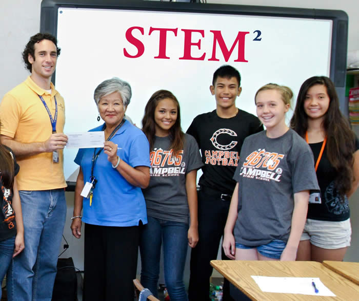 2010 STEM Teacher Scholarship winner receives the first of 3 $1,000 STEM Teaching Tool grants in his middle-school classroom in Hawaii. 2. STEM Teaching Tool Grants In addition to the STEM Teachers recipients described above, STEM Teaching Tool Grants also are presented to AFCEA Chapters for awarding to STEM teachers in their local communities. AFCEA Chapters develop strong relationships with local schools and STEM teachers through adopt-a-school and other programs. The Foundation enables Chapters to help teachers purchase instruments, equipment, lab kits, and sponsor extracurricular activities such as Robotics and Math clubs to enrich their classroom teaching. The program not only enriches student experience, it also builds prestige for individual teachers and their profession. In most cases, the Chapters award additional STEM Teaching Tool grants from their educational funds. Click here to request additional information about sponsoring this activity.