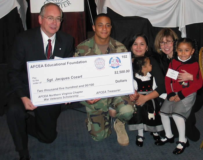 NVCC student scholarship winners and family members are recognized at the AFCEA Northern Virginia Chapter luncheon in fall 2011.