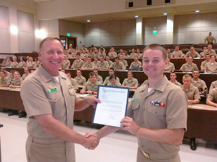 AFCEA ROTC Scholarship winner recognized during unit's All-Hands meeting. ***********