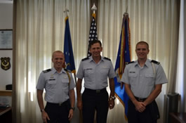ROTC students Maxwell, Cox, and Young at U.S. Air Forces-Europe (Ramstein Air Base, Germany) in front of 603rd Air and Space Operations Center. |