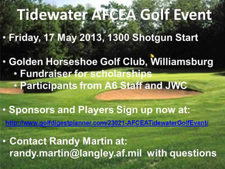 Sponsors and Players Sign Up Here Please note that while AFCEA International supports the Tidewater Chapter Golf Tournament, this event is not part of the East: Joint Warfighting event.