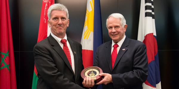 During spring ceremonies, Lt. Gen. John A. Dubia, USA (Ret.), presented the two AFCEA Honor Awards for Academic Excellence during commencement at the NDU iCollege. Gen. Dubia, former AFCEA executive vice president, defense, is a member of the foundation’s board of directors.