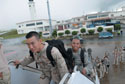 | Airman 1st Class David Zheng, USAF (l), and Staff Sgt. Joshua Garcia, USAF, board a contract aircraft at Kadena Air Base, Japan. More than 240 airmen from seven Pacific Air Force bases left Kadena Air Base for Southwest Asia to support operations Iraqi Freedom and Enduring Freedom. DCAPES allows the Air Force to track troops through all phases of deployment better. |
