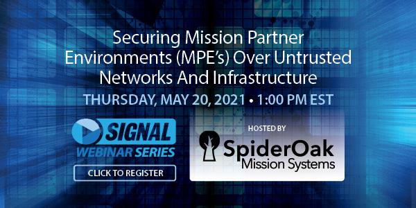 SpiderOak Mission Systems is pleased to invite you to a timely and relevant panel discussion where Brig. Gen. Jaqueline (Denise) Brown, USA; Brig. Gen. Jeffery D. Valenzia, USAF; Brig. Gen. Jeth Berrington Rey, USA; and Ted (“Hefty”) Conklin, technology director, Advanced Concepts and Technology, and senior engineering fellow at Raytheon, will discuss the threats to MPEs, the consequences of failure and how emerging technologies like Zero-Trust frameworks can secure the flow of information even in insecure, contested network environments.